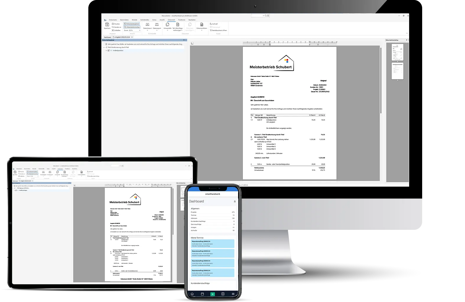 Als Inhaber eines kleinen Handwerksbetriebes verdienen Sie Ihr Geld mit der Arbeit vor Ort beim Kunden und nicht im Büro. Dennoch ist das Schreiben von Angeboten und Rechnungen notwendig. Aber seien wir mal ehrlich: Im stressigen Alltag zeitraubend und lästig. Unsere Handwerkersoftware smarthandwerk schafft Abhilfe und hält Ihnen als Handwerker den Rücken frei.